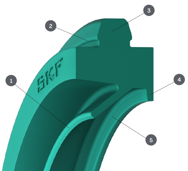 - El labio de sellado del exclusor dinámico muy flexible ofrece un buen manejo de la desalineación y un buen lavado de la grasa.